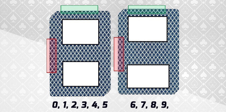 El ‘Edge sorting’ es en realidad una técnica que consiste en detectar las diferencias insignificantes en los bordes de las cartas para así obtener ventaja ante el casino sabiendo el tipo de cartas que están repartidas. Con una mayor atención al detalle y una observación profunda el jugador puede conocer el valor de las cartas antes de darles la vuelta y así poder vencer al casino. En general las cartas deberían ser iguales por detrás, pero existen pequeñas irregularidades que permiten realizar esta técnica de clasificación de bordes. Vamos a ver a continuación un ejemplo:
