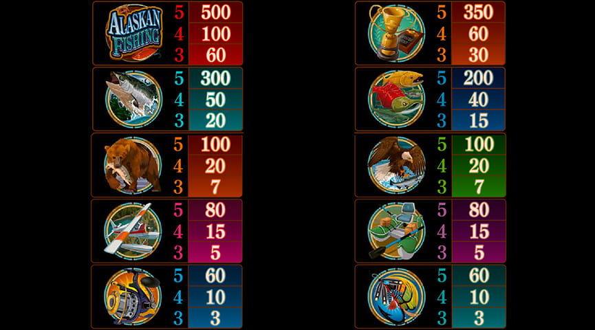 Alaska es un estado plagado de especies marinas y conocido por la pesca del salmón, del halibut o de la trucha arcoiris. En este juego dispondrás de 243 combinaciones de pago fijas, por lo que están activadas de forma permanente, y en ella las apuestas dependen del número de monedas y del tamaño de moneda jugado. Por otra parte, las tablas de pago muestran el número de créditos que se ganan con cada combinación, pudiendo lograr una ganancia máxima de 6000€ al obtener 5 símbolos del pescador.