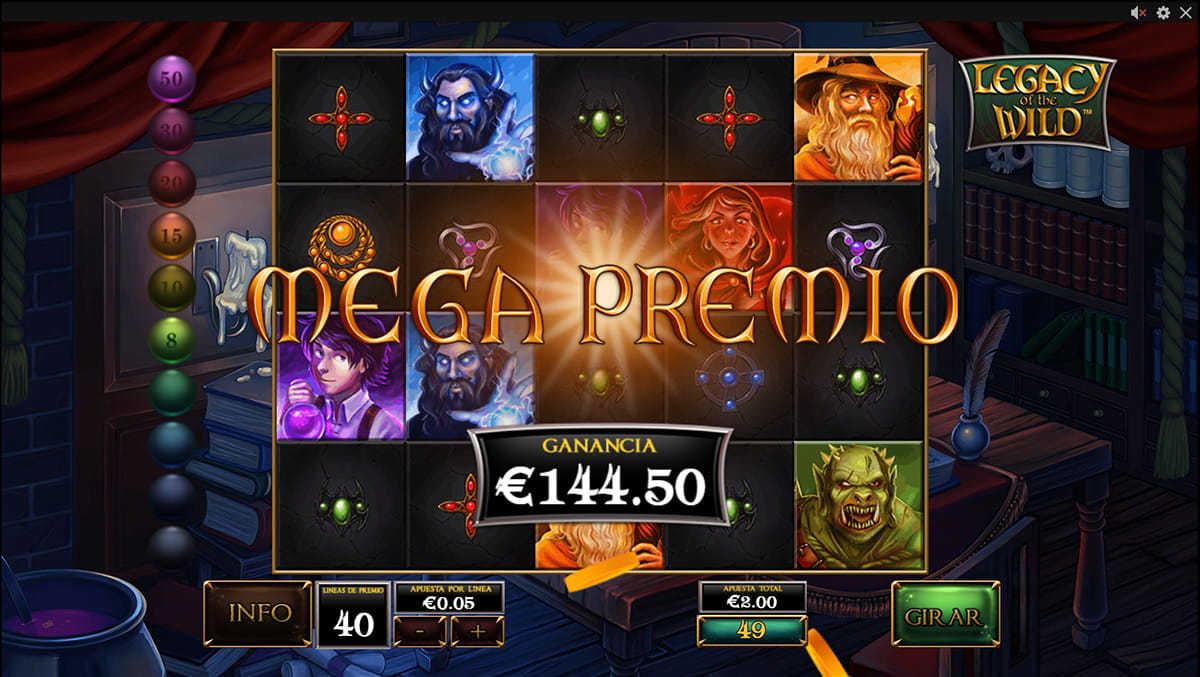 La slot Legacy of the Wild es una de las creaciones interesantes de Playtech que ha incluido varias funciones beneficiosas para el jugador y como resultado el juego tiene un muy buen RTP del 96,12% y alta volatilidad. Esto significa que al final el jugador recibe altos premios aunque los giros gratis son menos frecuentes. Es un juego lleno de misterios y si te gustan las historias con magos, brujas y monstruos entonces esta slot es para ti. Puedes esperar mucha diversión con la función avalancha y los Wilds que se amplían y te traen aun mas ganancias.
